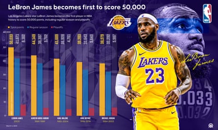 LeBron James’s points total dwarf other greats of the game. Photograph: Anadolu/Getty Images