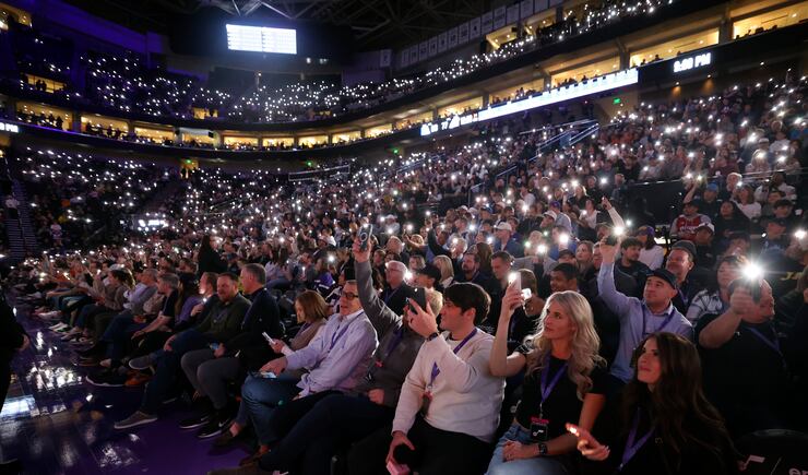 The crowd lights up the Delta Center with their cell phone flashlights during an NBA game between the Utah Jazz and the Detroit Pistons in Salt Lake City on Monday, March 3, 2025. Jazz lost 134-106. | Kristin Murphy, Deseret News